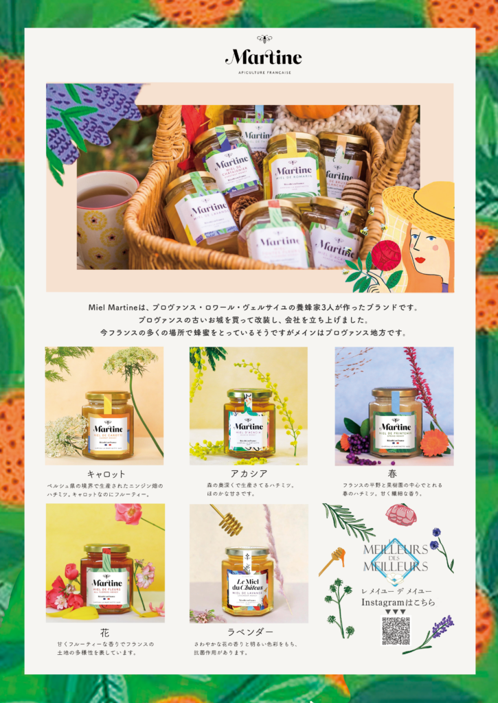 フランスの自然の中で採れる花からハチミツを生産しているので、100%フランス産になります。 このポイントにはこだわっているのでできあがるまで時間がかかります。 また、瓶に記載されているQRコードを読み込めば、抽出からハチミツとして出来上がるまでの場所の流れがわかるようになっており、安心・安全にとても気を配っています。